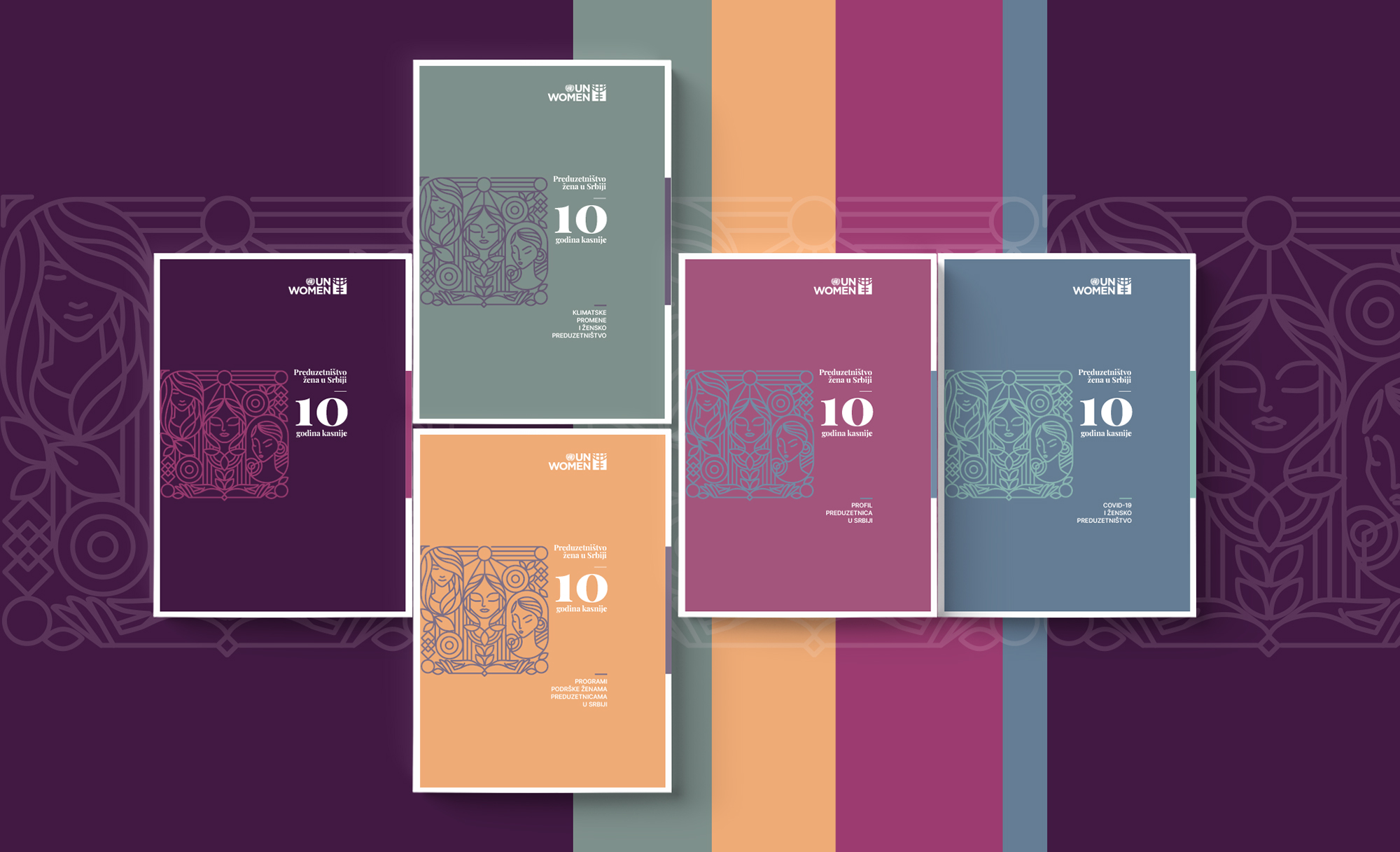 Work for UN Woman on behalf of marketing agency MaxNova Belgrade: I designed cover illustrations, layout design, prepress and final artwork for different social media platforms for 5 brochures within the case study Women’s Entrepreneurship in Serbia – ten years later.